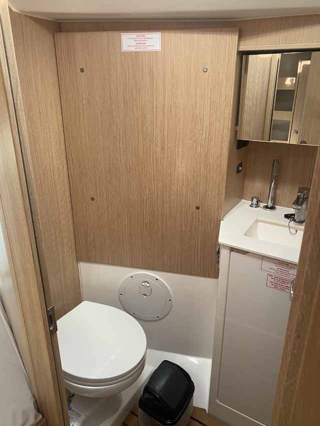 Anchor line Anchor swivel Bimini top Boat hook Bosun's chair (Safe seat) (boatswain's chair) Canister for water Cockpit table with light Cockpit/stern, outside shower Dinghy Dinghy (byboat) pump Electric anchor windlass Fenders Gangway Impeller, V-belt, oilfilter Jerry cans for diesel Main anchor Mooring ropes Plastic bucket Repair box for dinghy Round/globular fender Spare anchor (Reserve, Auxiliary anchor) Spotlight / Headlights Sprayhood Teak cockpit Water hose