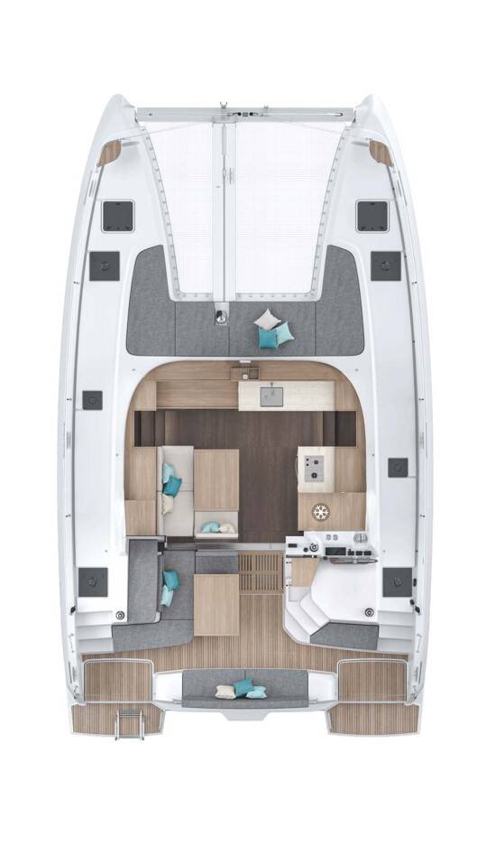 Catamaran Lagoon 38 Moana, built in 2026 is anchored in the Murter, ACI Marina Jezera, Šibenik region, Croatia. It has 4 cabins, can accommodate 8 + 1 people and has 2 toilets.