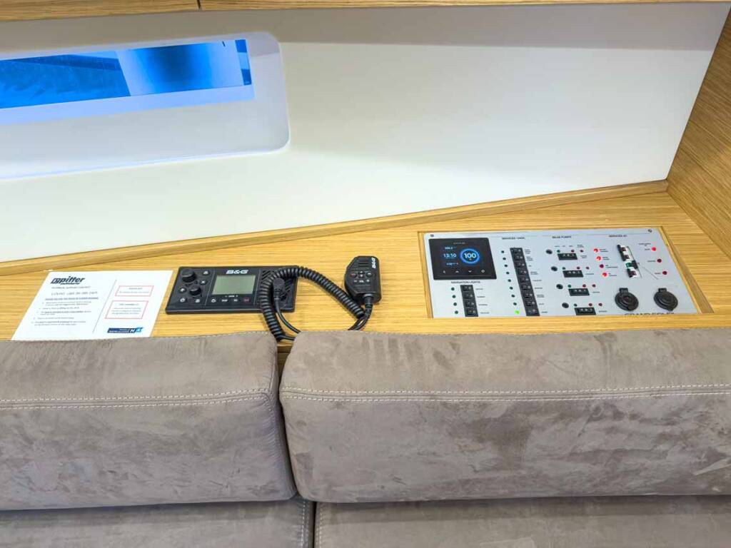 Anchor linea Anchor swivel Ancora principale Ausiliari di ancoraggio (Riserva di ancoraggio, ancora di rispetto) Barca gancio (mezzomarinaio) Black ball Black conus Canna d'acqua Cime di ormeggio Dinghy pompa (pompa aria) Doccetta esterna Gomena Impeller, V-belt, oilfilter Panchetta Parabordi Paraspruzzi Passerella Repair box for dinghy Riflettore (Faro) Round fender Secchio di plastica Springleine Tanica per gasolio Tanica per l'acqua Tavolo pozzetto Teak deck Teak pozzetto Tendalino Tender Varricello Salpancore